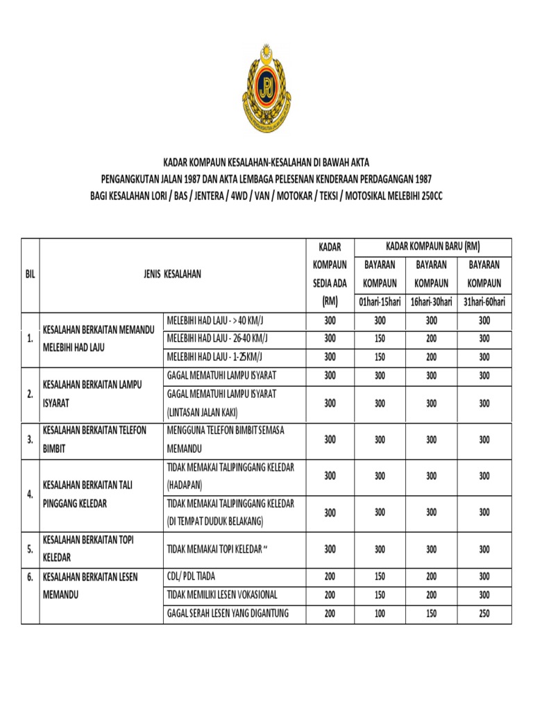 Kadar Kompaun Kesalahan Selain Motosikal 250cc Vol 1 Pdf
